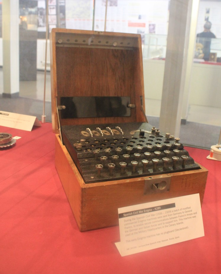 Trong hình ảnh bạn có thể thấy các bánh xe, khi quay các bánh xe đó, các thiết lập của máy Enigma sẽ thay đổi, và sẽ có đến 159 triệu triệu triệu các thiết lập khác nhau. Mỗi ngày quân đức sẽ gửi một loạt các thông điệp mới về kế hoạch đánh bom mới trước 12 đêm. Như những gì mình được nghe ở bảo tàng Bletchley Park, 12 giờ đêm, khi quân Đức gửi thông điệp, sẽ có những người trực tổng đài làm việc trên hệ thống rada tại London nghe và chép lại các mã Morse, rồi chuyển thành các dãy chữ cái.