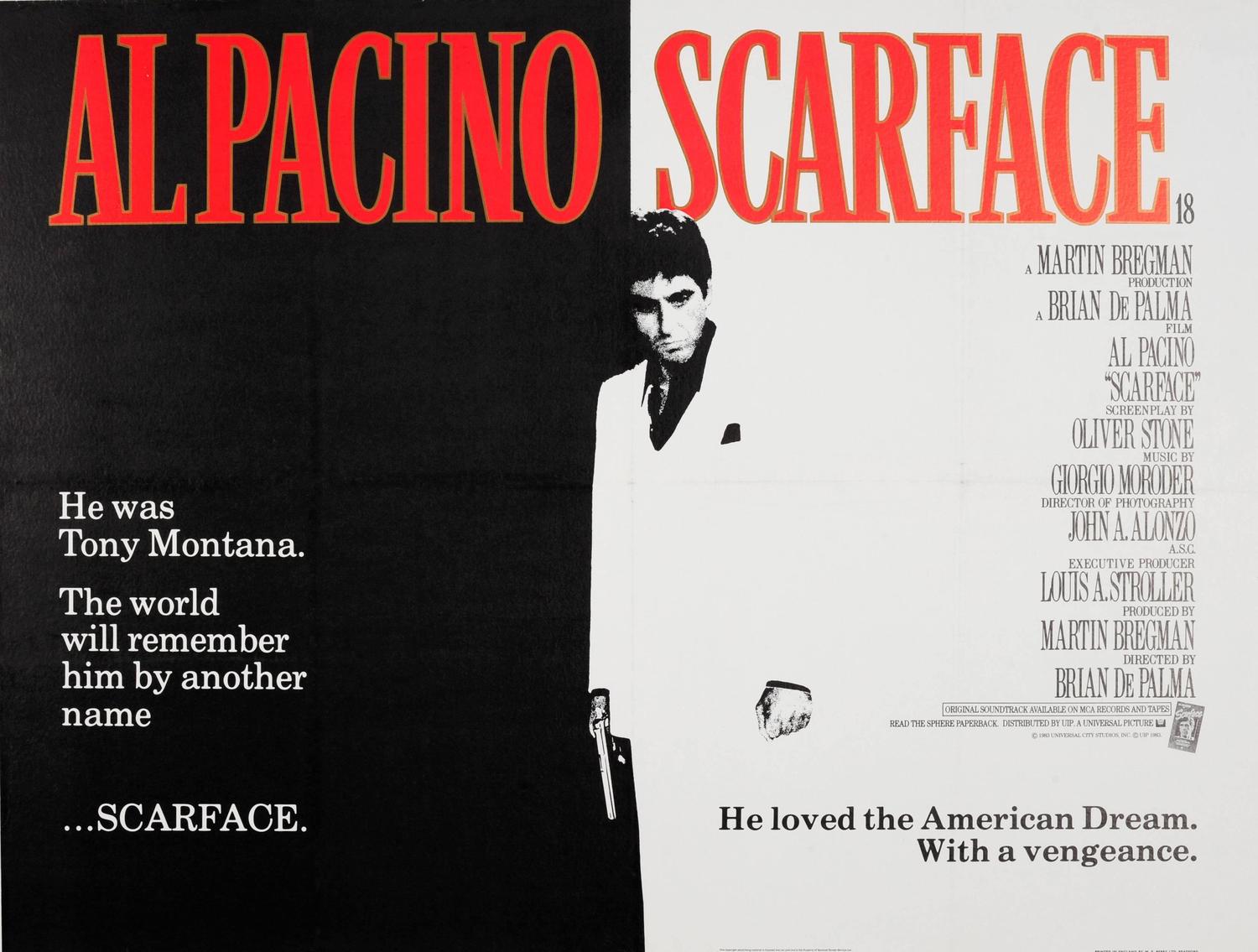 ‘Scarface’ lấy cảm hứng từ bộ phim nguyên tác cùng tên rất nổi tiếng của đạo diễn huyền thoại Howard Hawks năm 1932. Tuy nhiên phiên bản phim “Scarface” 1932 là câu chuyện của tên trùm gangster lẫy lừng người Mỹ Al Capone, thì “Scarface” (1983) là biệt danh của Tony Montana, một di dân từ Cuba đến Florida (Mỹ) rồi trở thành gangster trong bối cảnh bùng nổ ma túy ở thập niên 1980.