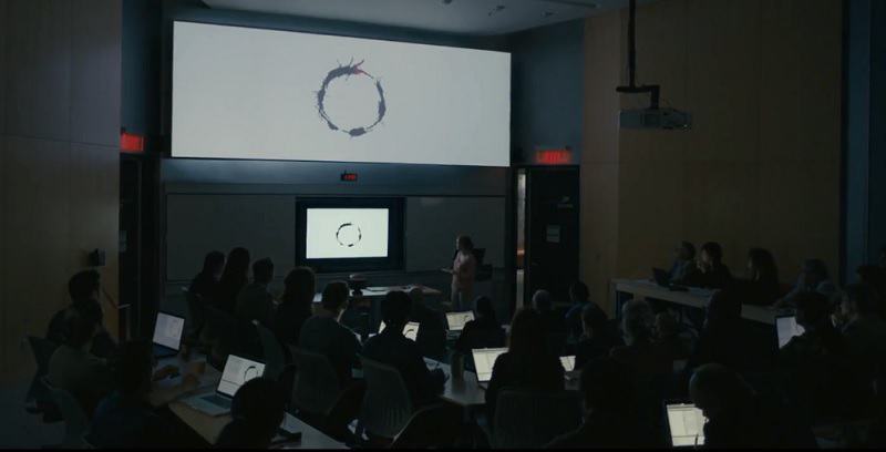 Có một đoạn Louise nhìn thấy trong tương lai mình đang dạy ngôn ngữ của người ngoài hành tinh cho sinh viên, để có thể giao tiếp với họ trong tương lai và cũng là để phát triển khả năng cảm nhận thời gian phi tuyến tính nhìn thấy tương lai.